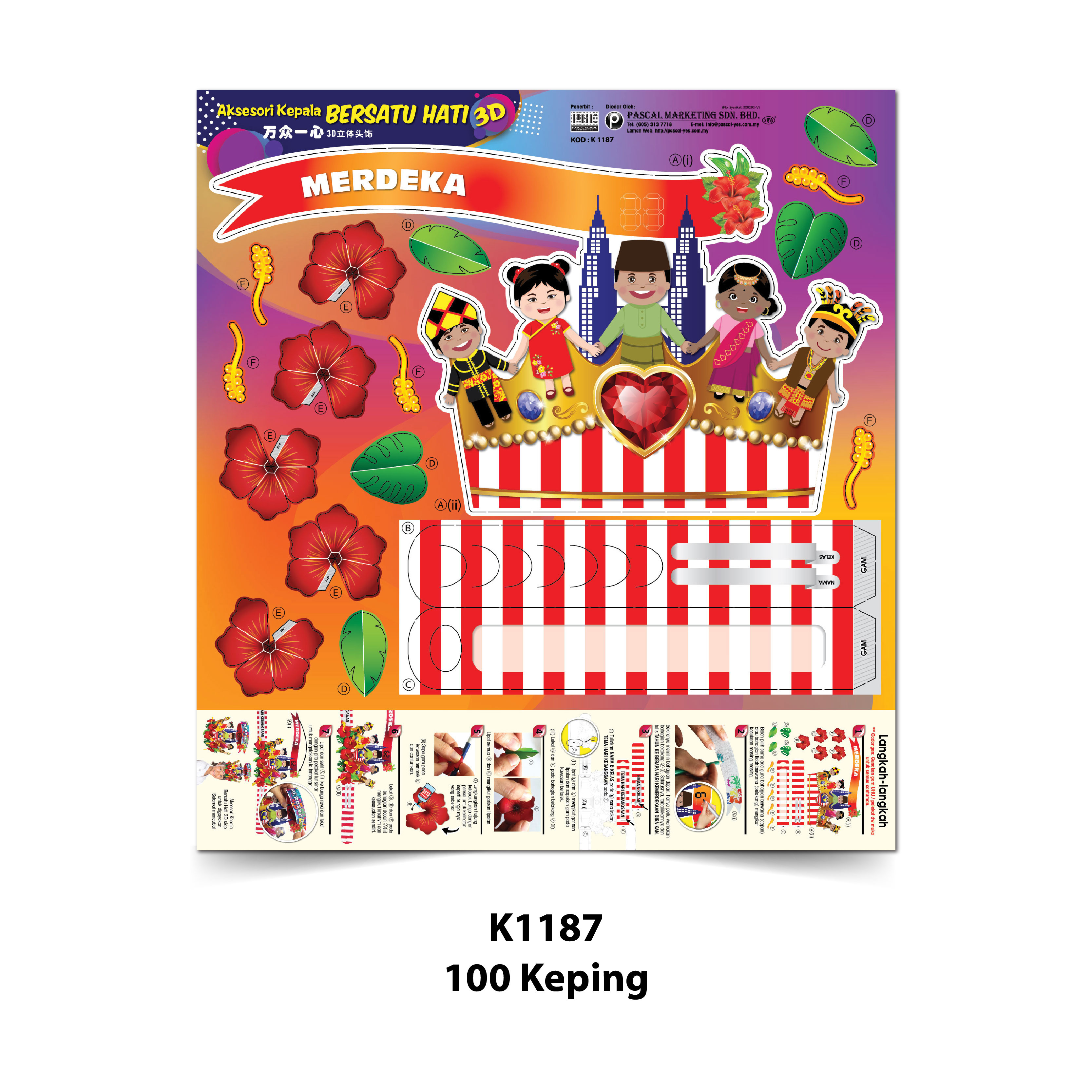 - Dicetak dua muka iaitu berwarna (depan) dan satu muka tidak berwarna (belakang) yang boleh diwarna mengikut kreativiti murid.