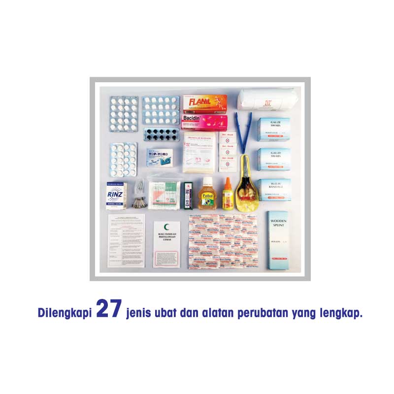 - Dilengkapi 27 jenis ubat dan alatan perubatan yang lengkap.